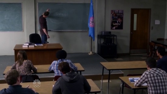 Dans le premier épisode, très habilement intitulé Repilot étant donné que l’on assiste à la reconstitution du groupe, il n’y aura aucune distraction périphérique. Une fois la formation reconduite et le nouvel objectif fixé (sauver Greendale), Harmon et son équipe vont pouvoir s’amuser à disséminer des éléments disparates dans le décor et même s’adonner à quelques commentaires. L’épisode 2, Introduction To Teaching, sera ainsi particulièrement fourni. Lors du cours consacré aux performances de Nicolas Cage, la salle est ainsi truffée d’affiches pastiches.